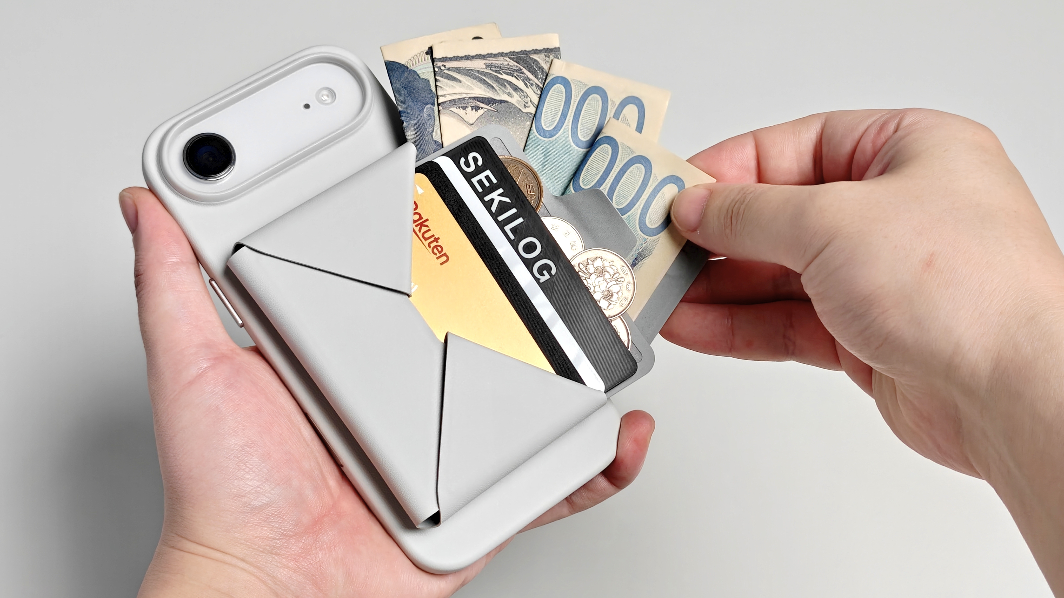 単体でも持ち歩ける見た目なので、バッグに忍ばせて“ミニ財布”としても機能する。
