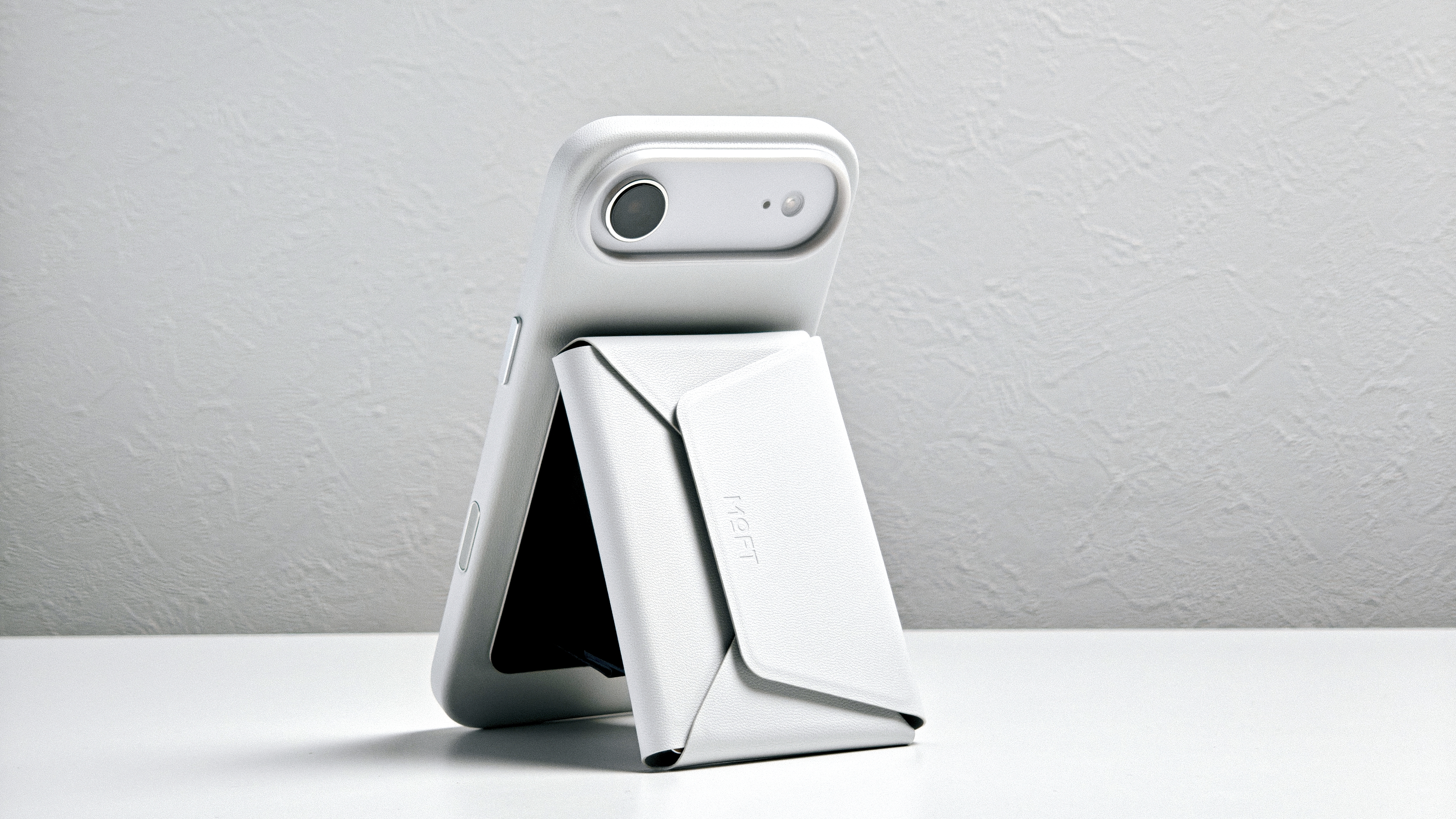 iPhone Air(MOFT MOVAS™レザーケース)に装着。ミスティグレーとの一体感は素晴らしい。