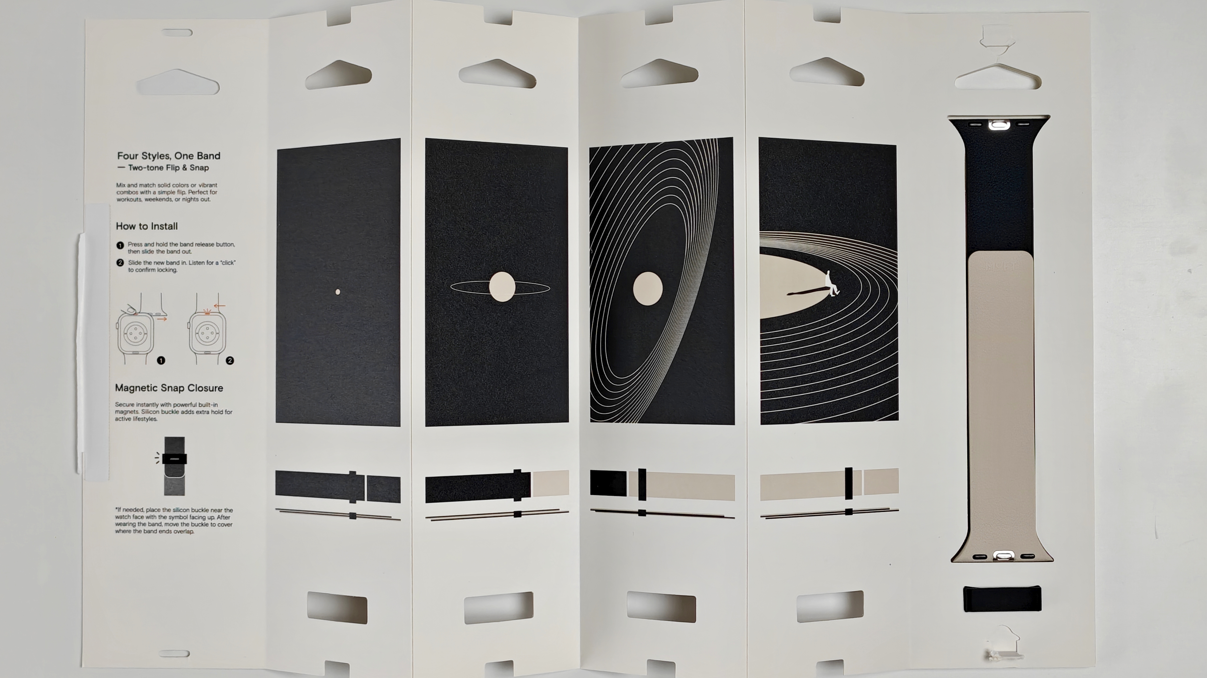MOFT初となるApple Watch用バンドの発売。パッケージも凝っておりおもしろい。