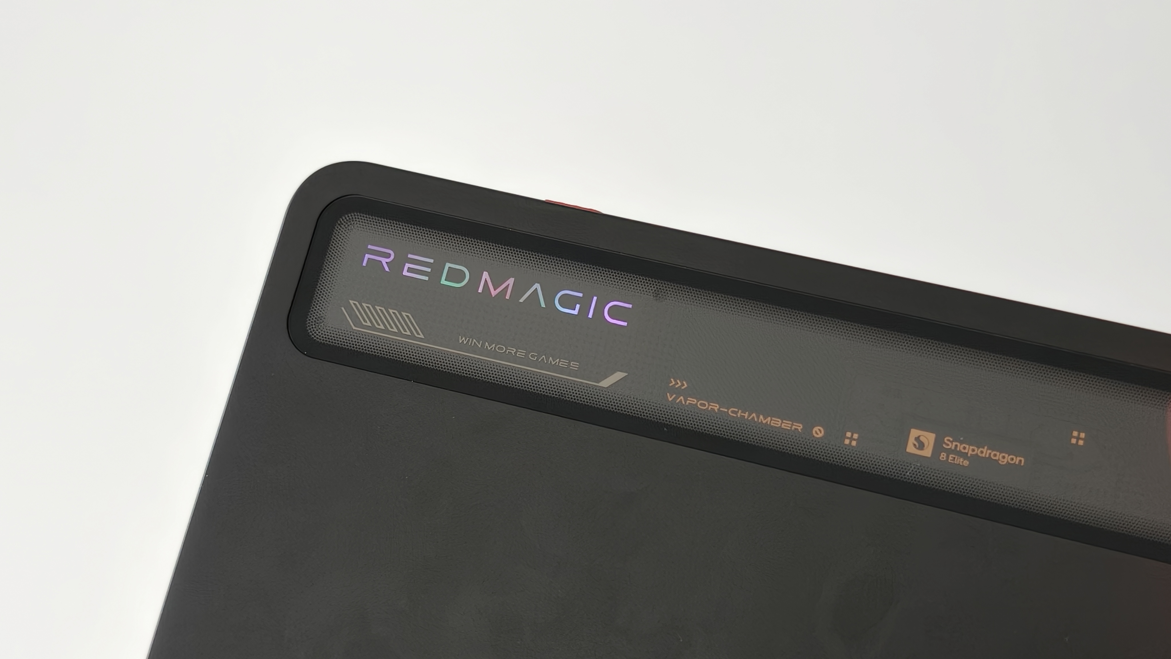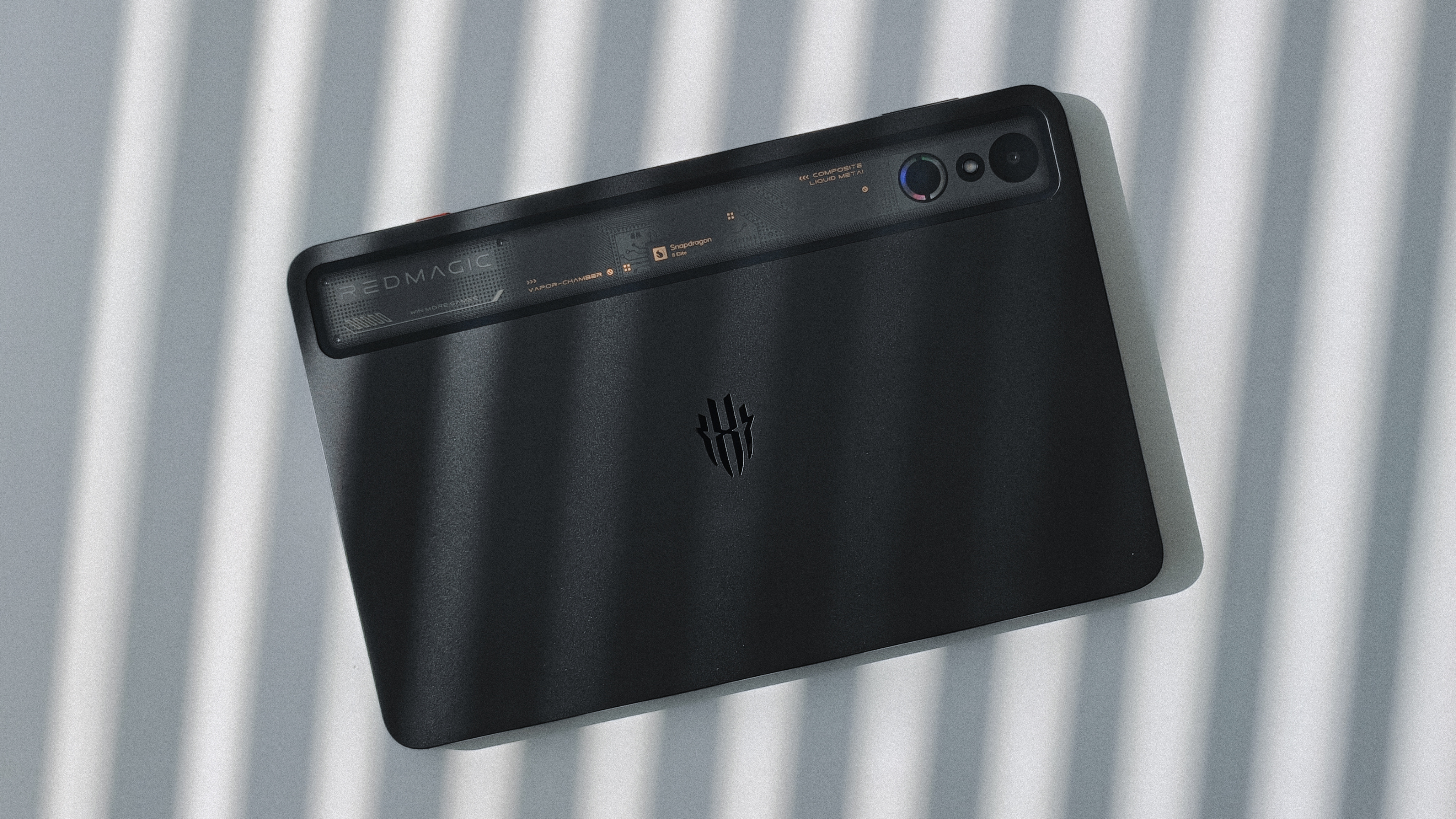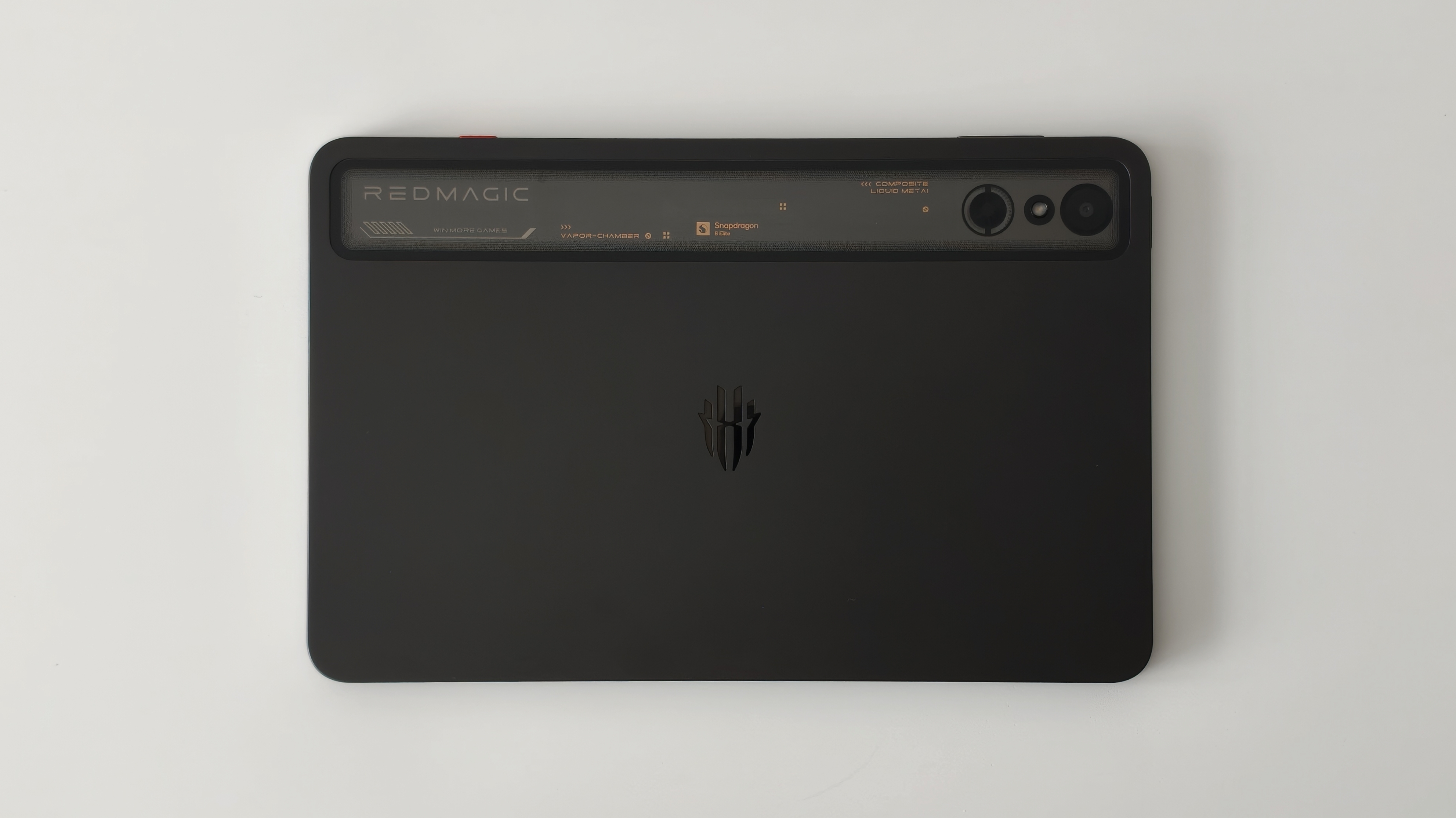 背面にはREDMAGICのロゴ。タブレット上部のスケルトンデザインが刺さる。