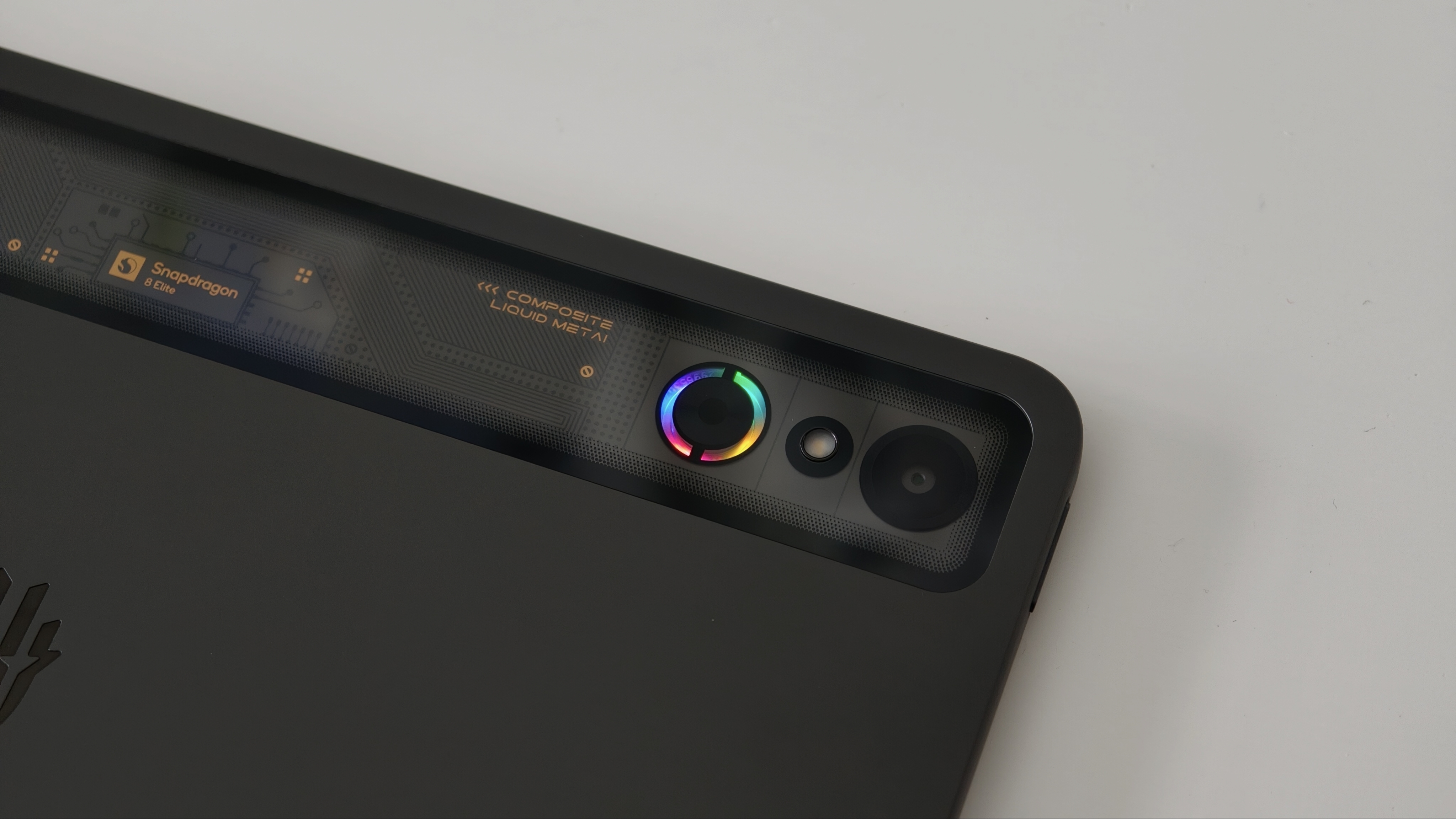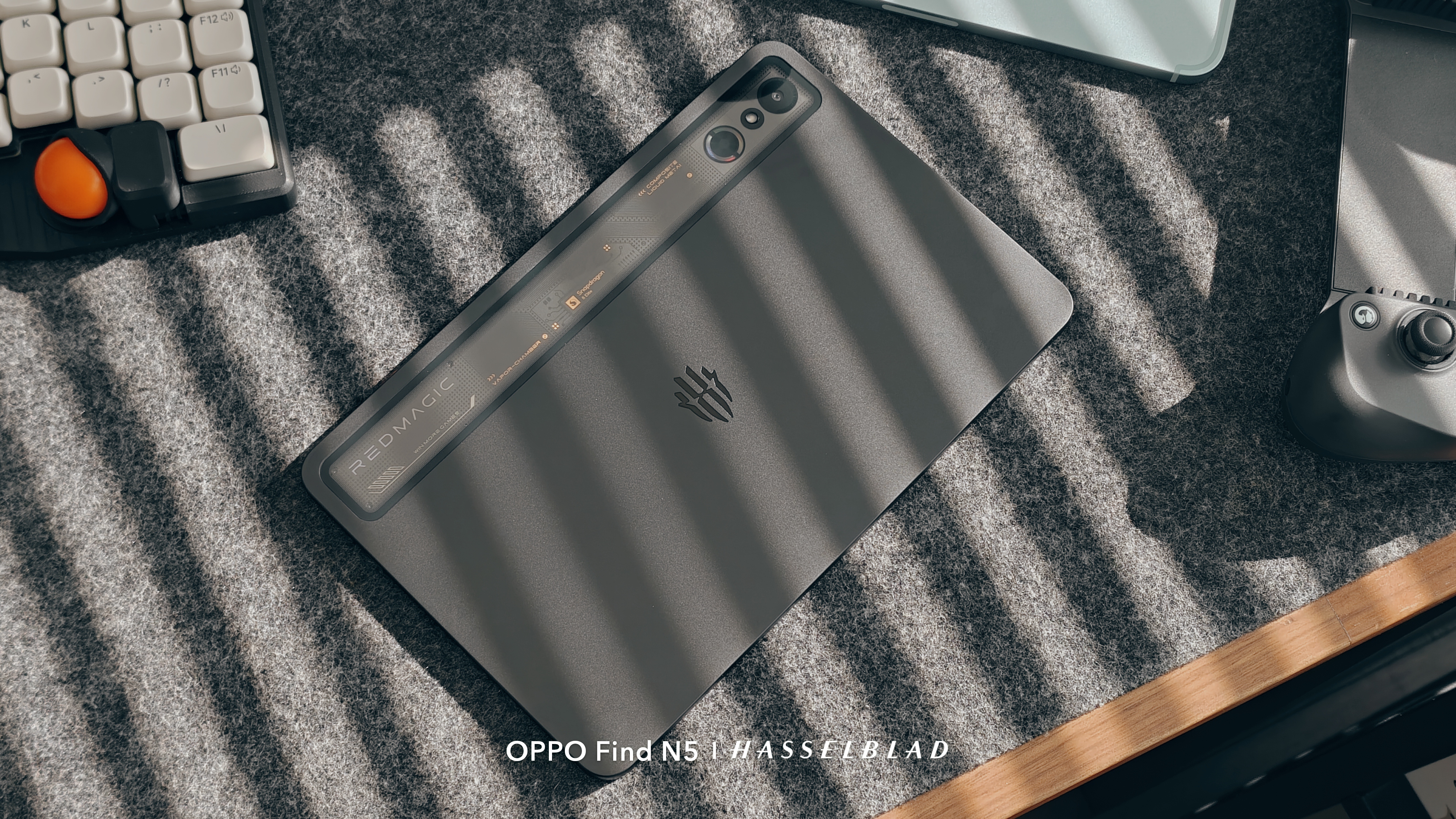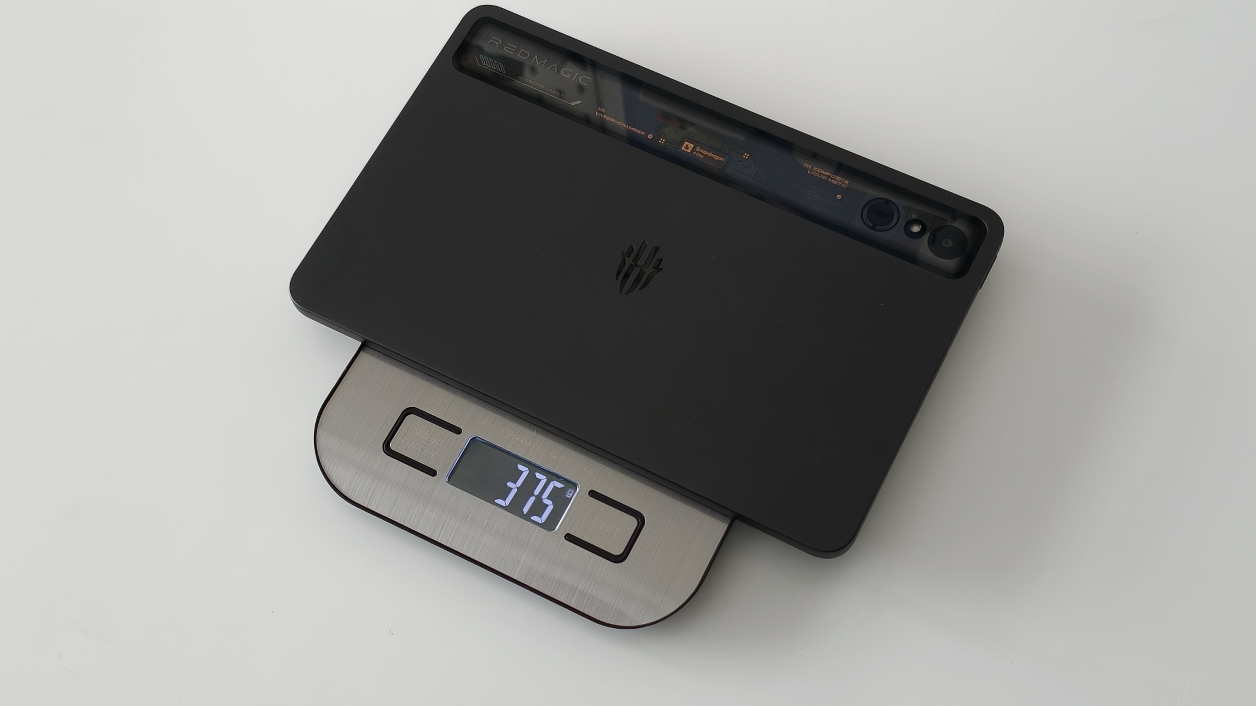 背面にはREDMAGICのロゴ。タブレット上部のスケルトンデザインが刺さる。