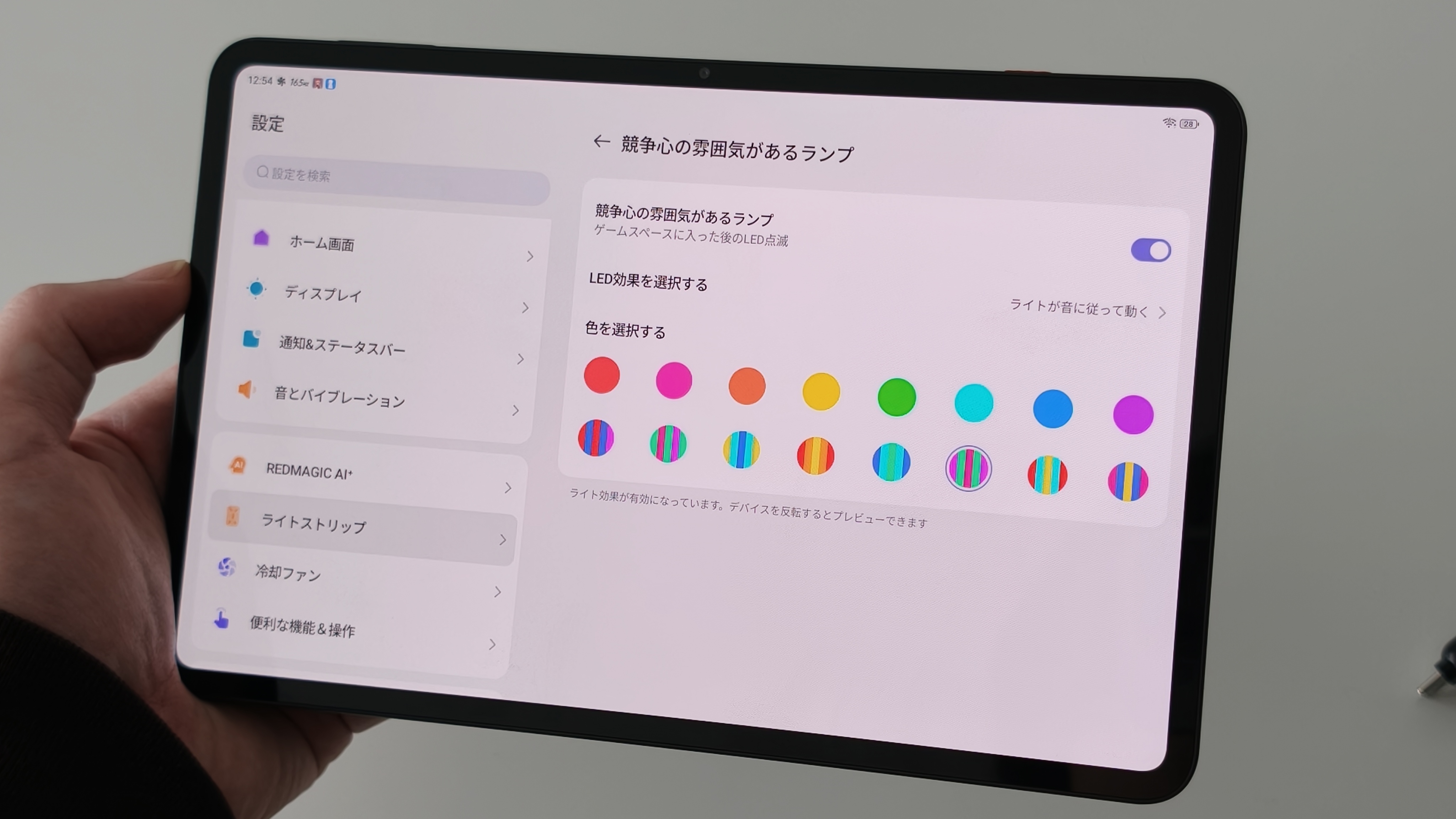 そして背面のREDMAGICとファン部分は発光する仕様となっている。ゲーミング感があっていい。