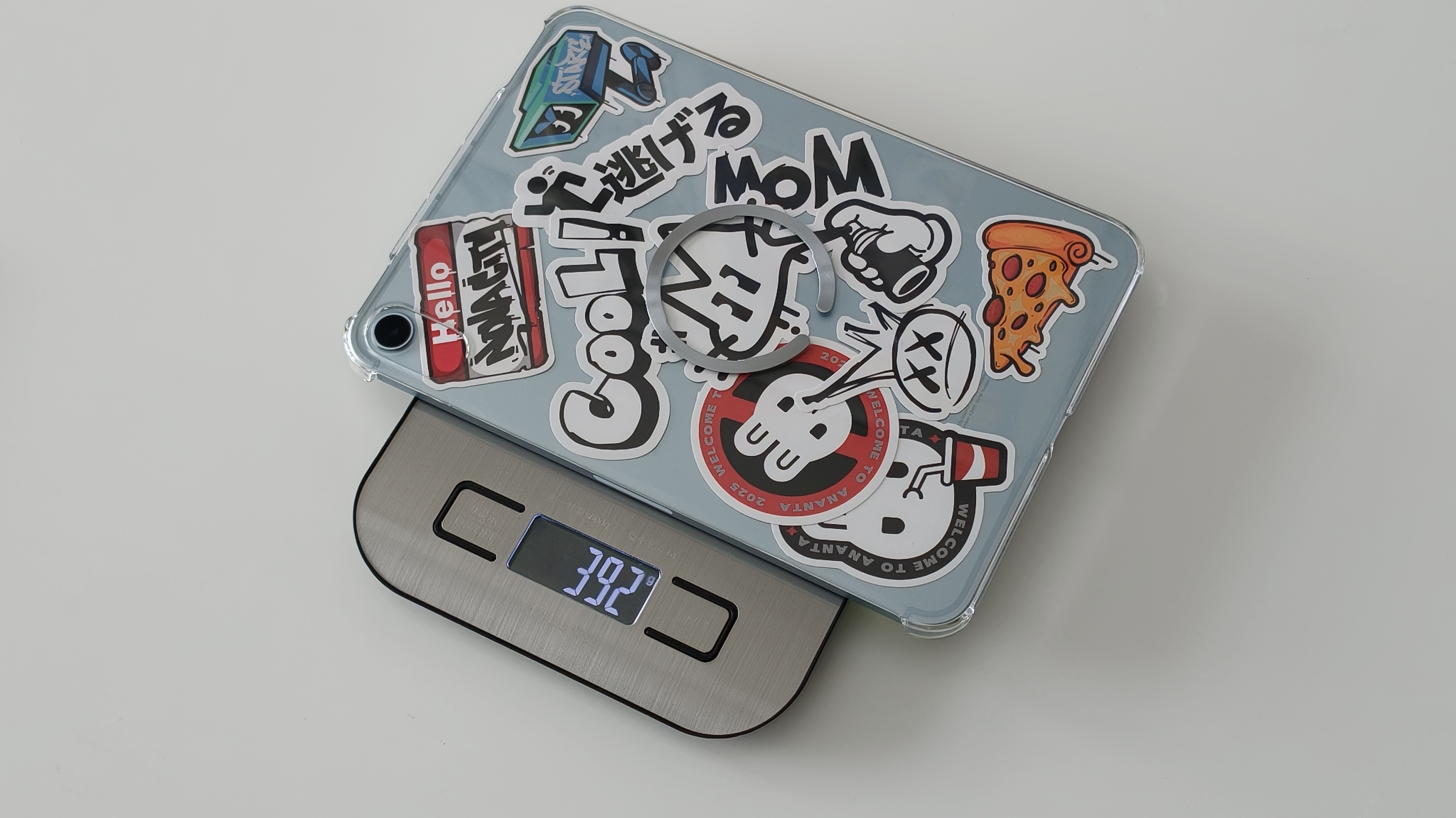 iPadminiにはシェルケースを着けており、その状態だと約392gと重い。